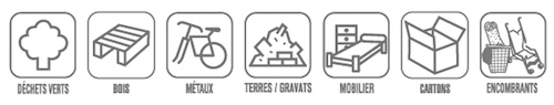– Déchets verts, Bois, Métaux, Gravats, Mobilier, Cartons